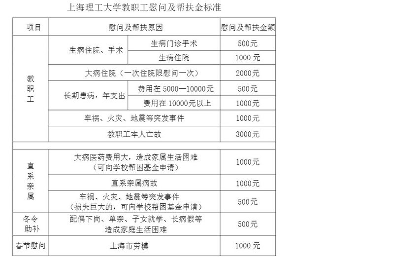 2、教职工现金慰问及帮扶金额按上述“beat365在线唯一官网教职工慰问及帮扶金标准”执行。