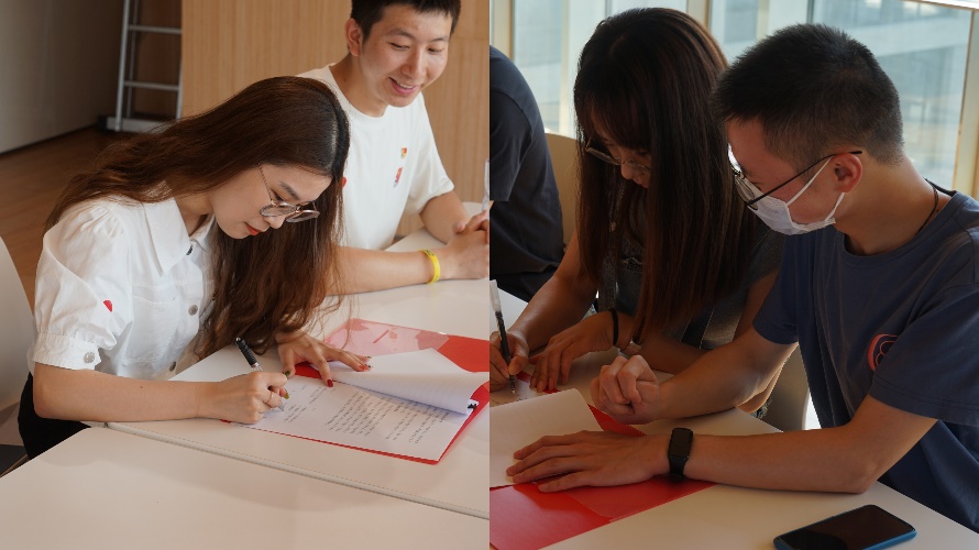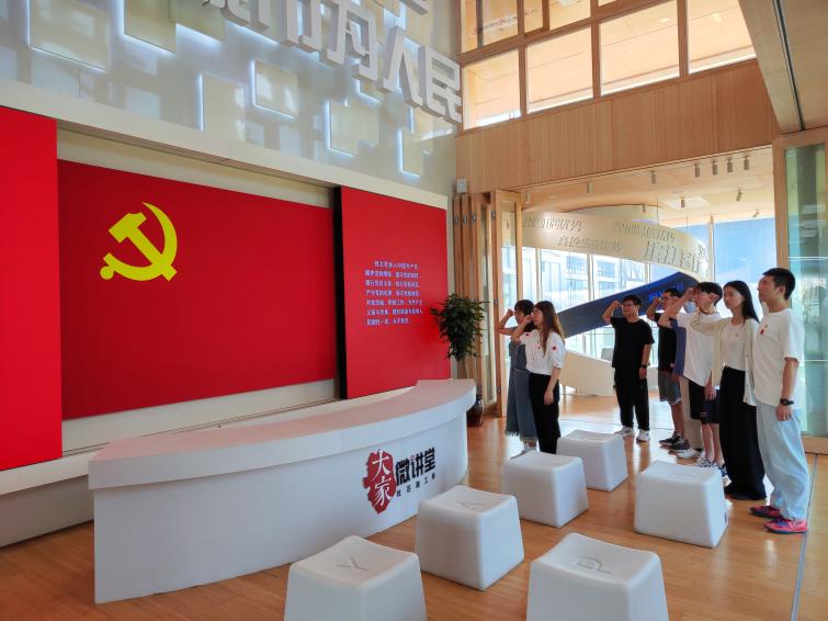 此次签约仪式的地点定在杨浦滨江的电站辅机厂党群服务站,意义非凡。2019,习近平总书记在上海考察时来到杨浦滨江,对杨浦区科学改造滨江空间、打造群众公共休闲活动场所的做法表示肯定,提出了“人民城市人民建、人民城市为人民”这一理念。该站点以“百年记忆,魅力滨江”为主题,在电站辅机厂原址上兴建,外表采用了钢架构外包型、全玻璃通透式建筑构式,更是滨江党群服务站的旗舰站。在共建签约仪式结束之后,两位党支部书记共同带领大家重温入党誓词,强化了大家的宗旨意识和责任意识,激励着广大党员不忘初心、牢记使命,始终践行入党誓言,真抓实干、只争朝夕。