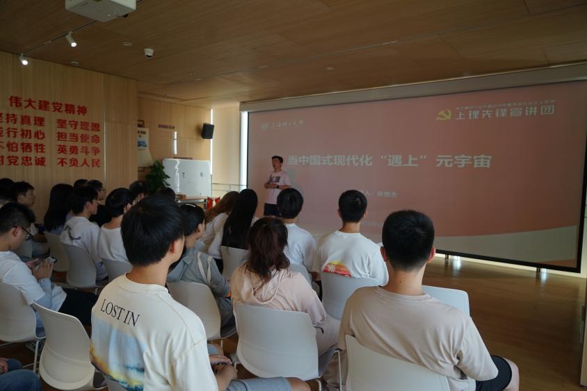 在全党深入开展学习贯彻习近平新时代中国特色社会主义思想主题教育之际,我们邀请到了beat365在线唯一官网先锋宣讲团的成员,来自光电学院光学工程博士生党支部的优秀党支部书记张世杰同志进行宣讲,宣讲题目为:当中国式现代化“遇上”元宇宙。通过张世杰同志的宣讲,党员同志们更加深刻的认识到科技创新的重要性,随着元宇宙、区块链、数字孪生、ChatGPT的诞生,面对世界百年未有之大变局要坚持创新在我国现代化建设全局中的核心地位,我们要把科技自立自强作为国家发展的战略支撑,加快建设科技强国。