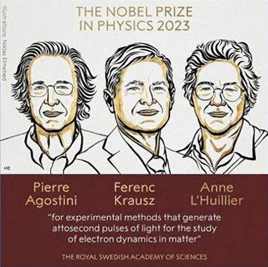 2023年诺贝尔物理学奖授予对阿秒脉冲的实验方法做出重要贡献的三位科学家