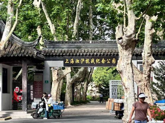 随后,我们先后走进淞沪抗战公园与淞沪抗战纪念馆,在战火与记忆的交织中,触摸那段不屈的历史脉络。园中随处可见的抗战雕塑与纪念碑,让人感受到一股沉甸甸的历史气息。公园中央广场中矗立的上海淞沪抗战纪念碑格外醒目,碑身挺拔庄严,碑前的雕塑生动刻画了战士们浴血奋战的场景,仿佛在向每一位到访者诉说那段波澜壮阔的抗战历史。我们在纪念碑前驻足凝望,并拍下合影,将这份敬意定格在镜头中。