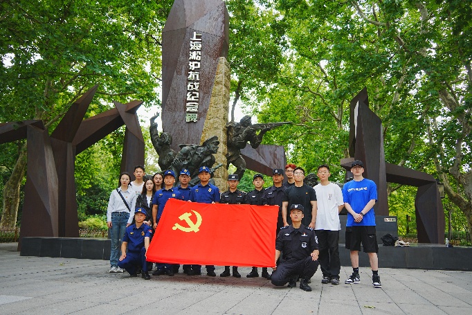 移步淞沪抗战纪念馆,展厅按时间顺序陈列着珍贵的历史照片、武器实物、地图和影像资料,生动还原了1937年淞沪会战的全过程。从战役爆发的背景,到正面战场的激烈拼杀,再到民众支前的感人故事,每一部分都让人感受到当年将士和百姓共赴国难的坚毅与勇气。走出纪念馆前,我们同样拍下了合影,把这段特殊的参观记忆留在画面中。从公园的鲜活记忆到展馆的厚重史料,都在诉说着上海红色基因里“以文醒世”与“以血卫国”的交响,是韧性与担当跨越时空的永恒传承,这段历史将永远镌刻在心中,激励着我们铭记先辈、奋勇前行。
